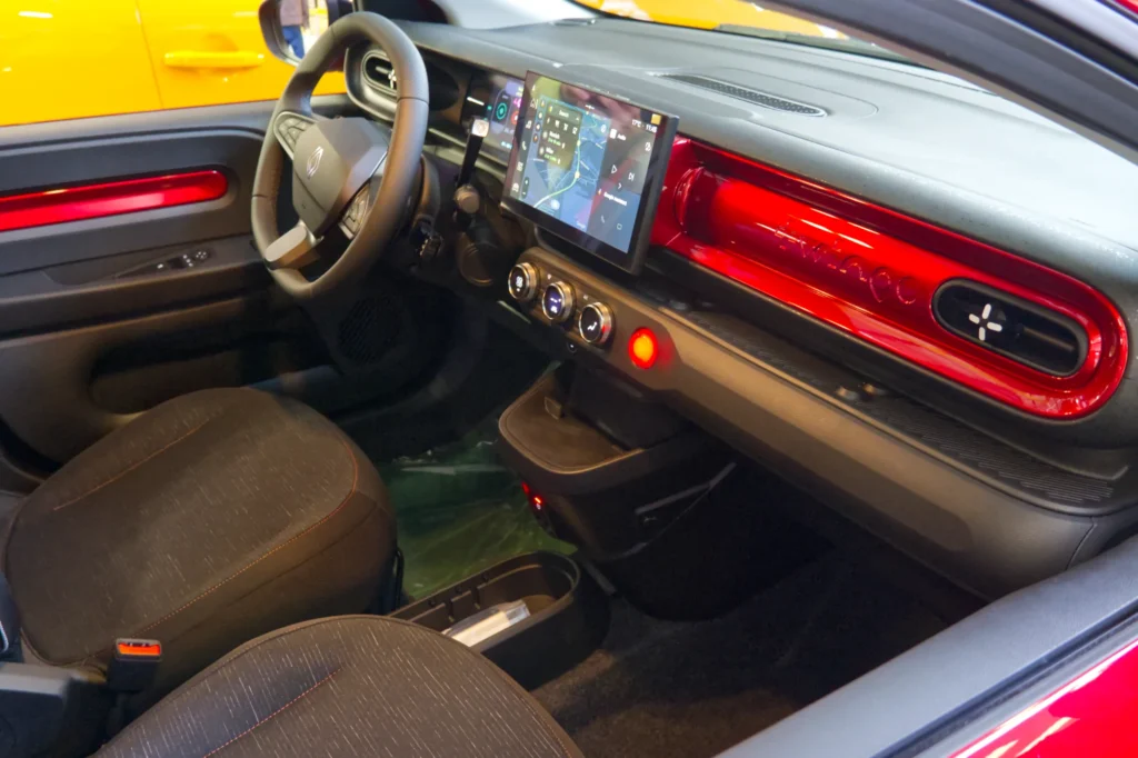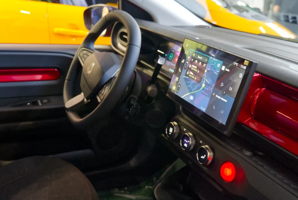 Po modelih 5 in 4 je Twingo še tretji »retro« Renault za električno dobo in čeprav se mi »Petka« še vedno zdi najbolj posrečena reinkarnacija, novinec na zaostaja veliko. Oblikovalcem je dobro uspelo poustvariti luči, tokrat seveda v tehniki LED, s prijaznim pomežikom, v primerjavi s prvo generacijo, od koder črpa navdih, je nekoliko bolj zaobljen, kar ga dela še bolj simpatičnega, in tudi podaljšanje ni pokvarilo proporcev. Določeni plastični vsadki, denimo spodaj, kjer naj bi bile meglenke, ali zračniki na motornem pokrovu, so zanimiva popestritev, toda hkrati delujejo nekoliko ceneno (enaka ovalna »dekoracija« je tudi na spodnji prečki volana). Od barv se mi najbolj primerna od treh, ki sem jih videl, zdi zelena, tudi rumena mu ustreza, rdeča pa malo manj. V živo se ob hitrem pogledu niti ne opazi, fotografije pa razkrivajo precej slabo prileganje posameznih delov karoserije, kar pripisujem predserijski izdelavi.