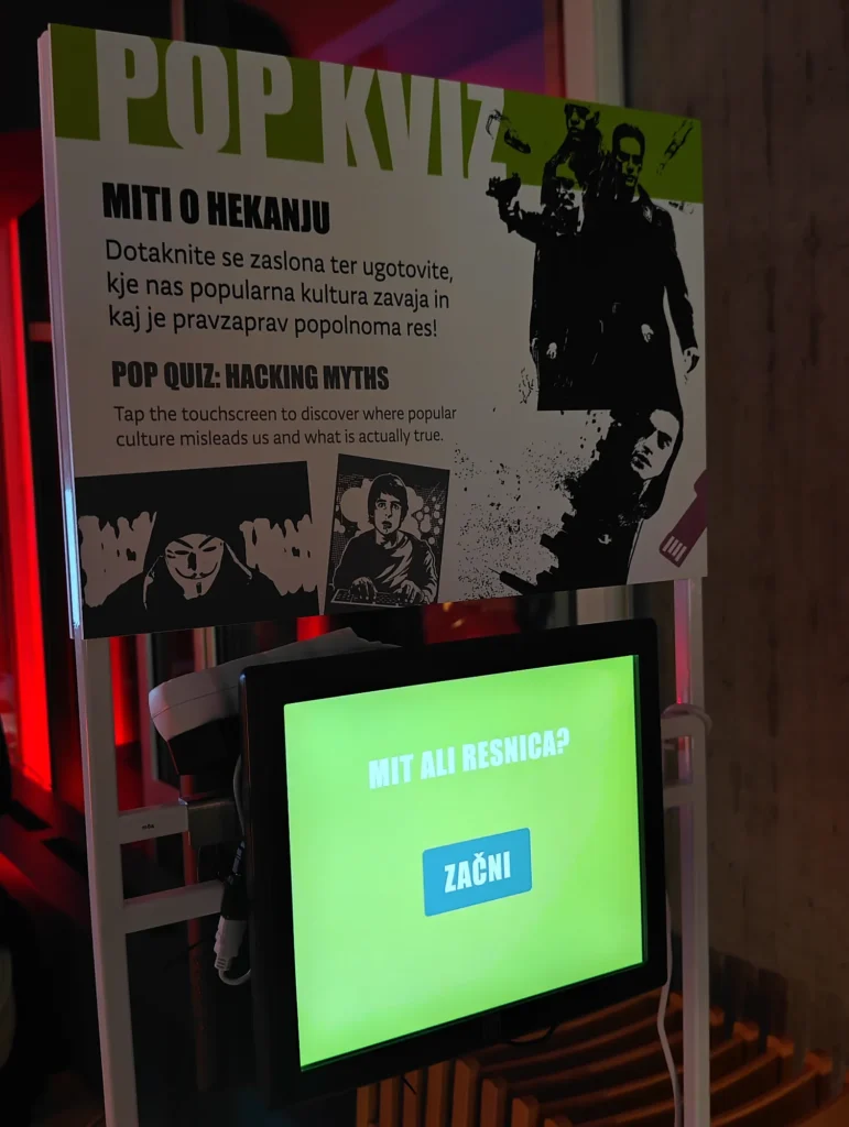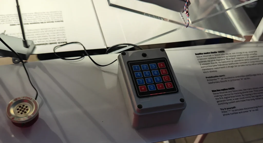 Na razstavi boste lahko prebrali ključne točke, spisane dovolj na kratko, pri čemer so posamezne »postaje« urejene tudi z motivi iz te scene, denimo s fizičnim požarnim zidom, obešalnikom za klobuke ali šahovnico. Če se želite bolj poglobiti v tematiko, si lahko ogledate in poslušate še določene intervjuje in izseke iz dokumentarnih filmov, »programirate« repliko modre škatle za »hekanje« telefonskih linij in se preizkusite v kvizih, kjer boste pokazali znanje o svetu hekerjev in o kibernetski varnosti. Upam, da boste presegli moj rezultat s po enim napačnim odgovorom v vsakem od dveh kvizov, ki sem ju rešil.