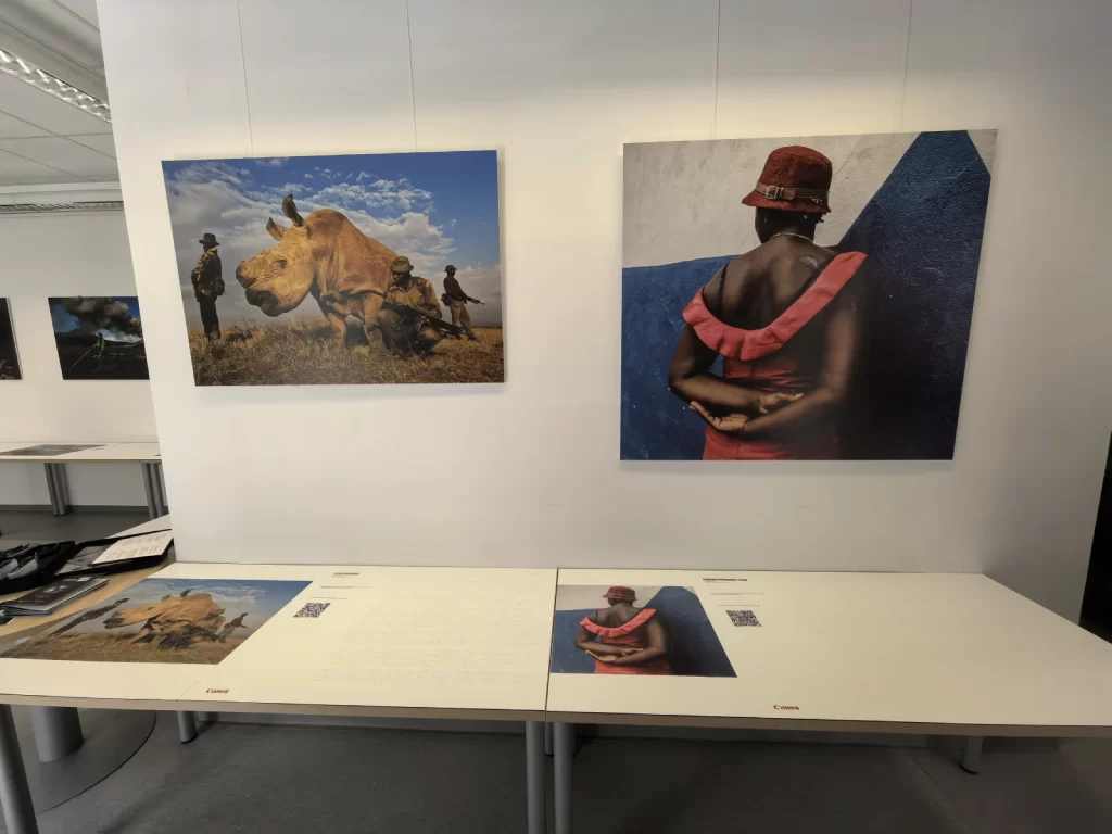 Na ogled so dela priznanih fotografov in ambasadorjev Canona, kot so Brent Stirton, Sebastiao Salgada, Yagazie Emezi, Muhammed Muheisen in slovenski športni fotograf Samo Videc. Ta je na fotografiji ovekovečil podobo parašportnika Darka Đurića, ko se »poganja« skozi vodo.
