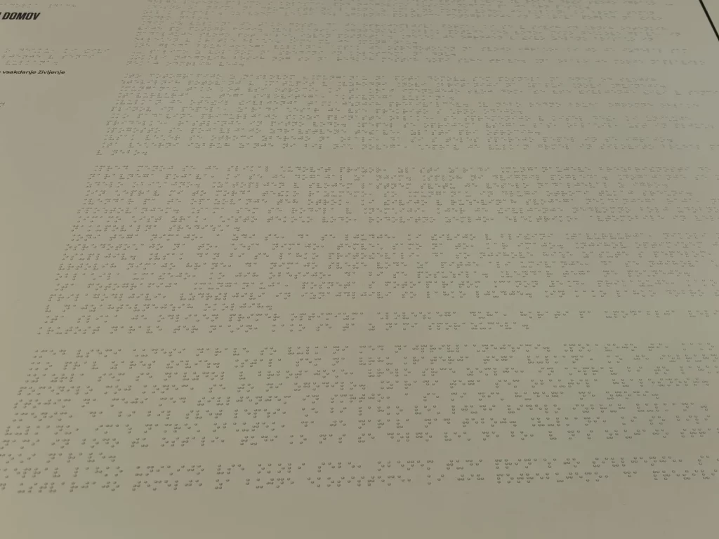 Prikaz fotografij je obiskovalcem z okvarjenim vidom prilagojen na več načinov. Natisnjena fotografije visi na steni, medtem ko je pod njo na mizici opis v brajici, koda qr za dostop do zvočnega opisa in še njen reliefni izpis. To pomaga, da fotografije dojamejo ne samo slabovidni, temveč tudi slepi. Seveda je tem lažje, če jo obišče z nekom, ki mu jo še opiše s svojimi besedami.
