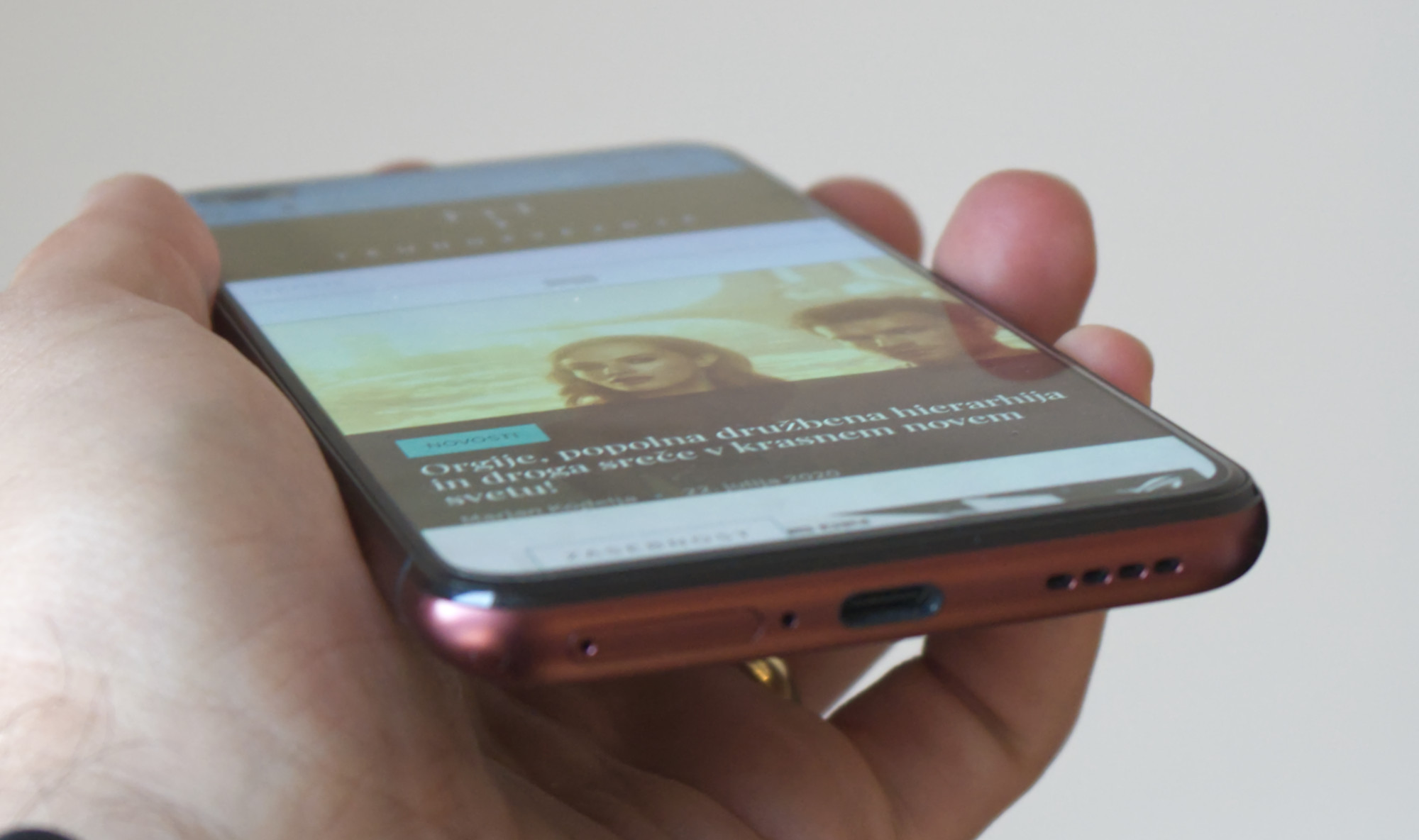 Občutek pri uporabi je odličen. X50 Pro 5G je po velikosti ravno nekje med obema cenejšima »bratoma«, kar pomeni, da je za moj okus blizu idealne velikosti. Kovinsko ohišje s stekleno zadnjo stranico pa daje vtis kakovosti in drage naprave, in še mat obdelava stekla je za moj okus bolj zanimiva kot svetleča tako na pogled kot na otip. Žal pa zaradi material ni nič manj drseč in za manj previdne bo ovitek kar nujen. Na srečo proizvajalec prozornega že prilaga v škatlo. Telefon ni lahek, a je vseeno zelo prijeten, fizične lastnosti pa nikakor niso konec zgodbe, saj jih dopolnijo še druge vrline, primarno pa zaslon.