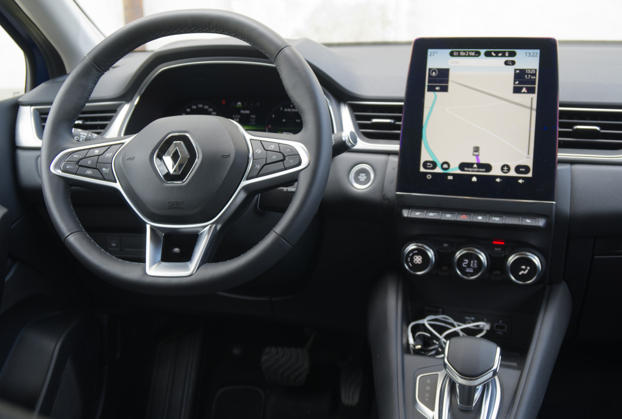 Notranjost je sploh drug svet. Saj se še vedno najde kakšen del z vprašljivo izbiro plastike, najsi bo taka, na kateri se poznajo odtisi od prijemanja z lepljivimi prsti, ali pretirano sijoča, toda dizajn, izbira materialov in tudi kakovost upravljanja so naredili pravi preskok. Prejšnja kabina je bila, brez zamere Renault in lastniki starega Capturja, nizkocenovna. Veliko plastike in malo zanimivega. Po novem zadeva ima nekaj karakterja. Še vedno ni pretirano vznemirljiva, a vsaj »klavirske« tipke so lušten prijem, prav tako »lebdeča« konzola pri dražjih izvedbah s samodejnim menjalnikom, četudi prostor pod njo ni tako zelo uporaben, kot bi nas kdo želel prepričati. Vse skupaj deluje tudi veliko bolj prijazno, zračno in dražje, navsezadnje tudi zaradi veliko večjih in lepših zaslonov. Stari infozabavni sistem z majhnim zaslonom, ki še živi v Daciah, je pri Renaultu šel v pozabo. Novi, ki smo ga srečali že v Cliu, je res velika nadgradnja. Ima še svoje muhe, o njih malo več kasneje, toda veliko večino časa razveseljuje in olajša uporabo tega avta. Zdaj lahko še merilnike popolnoma nadomesti zaslon, znebili pa so se tudi tipk, raztreščenih po vsej kabini, in jih združili na volanu. Na eni strani za (radarski) tempomat in preprečevanje zapuščanja voznega pasu, na drugi pa za upravljanje s prikazi na zaslonu oz. »merilniki«. Upravljanje »radia« je še vedno pod volanom, a tudi nekoliko spremenjeno. Ni najboljša, a tudi ne najslabša tovrstna rešitev.
