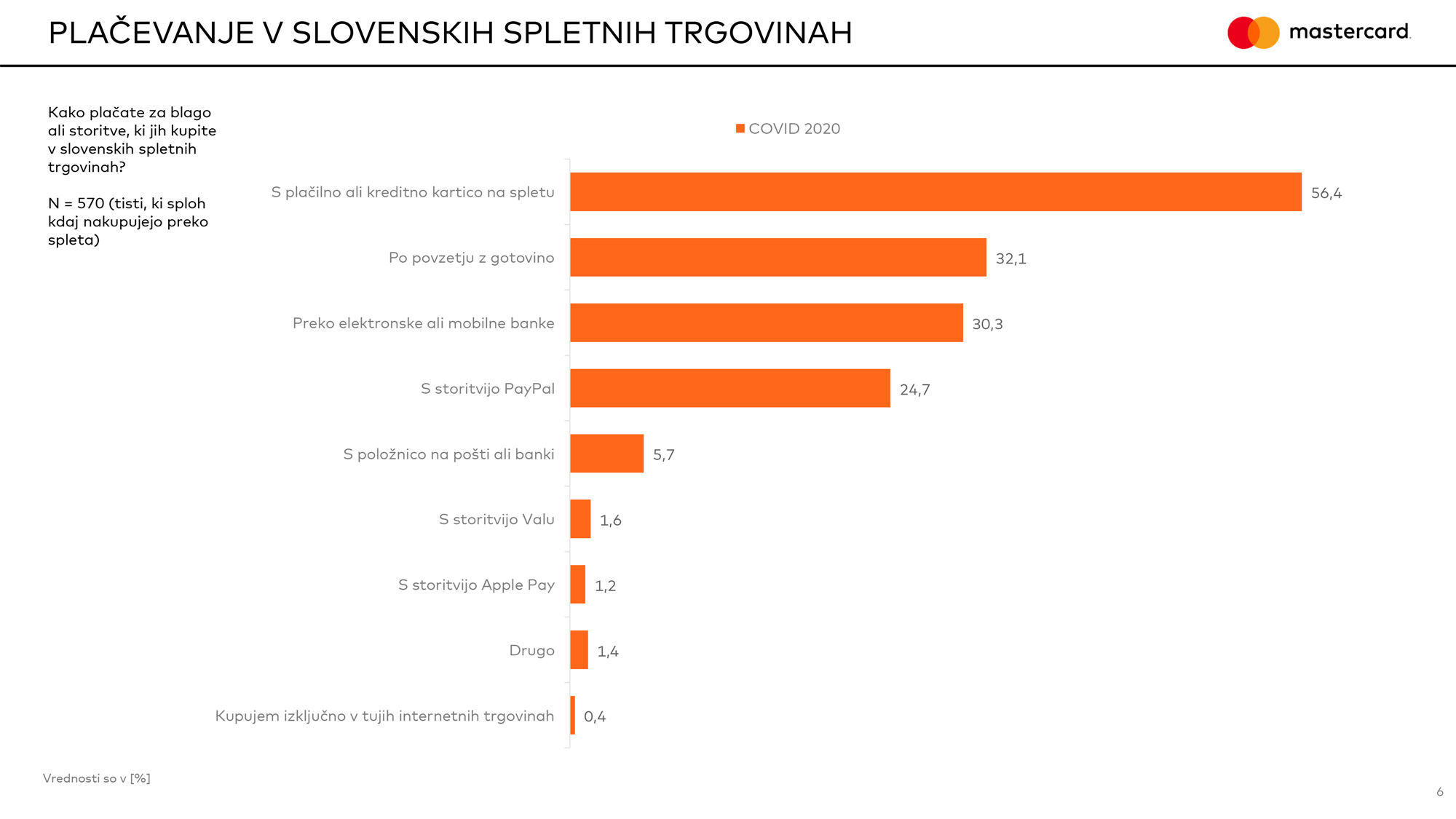 Spletno nakupovanje je pogosto, a še vedno ne prvotna izbira za marsikatero blago. V Mastercardu so ugotovili, da je v zadnjem mesecu vsaj en nakup prek spleta opravilo skoraj tri četrtine vprašanih, medtem ko je pri prejšnjem takem spraševanju, novembra lani, enako odgovorilo 60 odstotkov vprašanih. Novih tovrstnih kupcev, ki pred epidemijo sploh niso ničesar naročali po spletu, pa je pet odstotkov. Za trgovce in druge ponudnike, tudi obrtnike in še koga, verjetno ni dvoma, da se je treba podati na splet in v mobilno okolje. Je pa tam poleg sedmih glavnih zapovedi treba gledati še na dva vidika. Prvi je čim večja enostavnost plačevanja. Skorajda nujna je možnost shranjevanja podatkov o kreditni kartici, kajti nihče, razen morda najbolj paranoičnih uporabnikov, je noče vpisovati vsakič posebej. Že njeno iskanje je marsikomu odveč. Seveda pa je za varno hrambo treba vzeti rešitev kartičnega ponudnika in morda to tudi izpostaviti, da kupci ne bodo imeli težav z zaupanjem. V glavi vsakogar takoj zasvetijo drugačne lučke, če ve, da za podatke skrbi globalni gigant z veliko težje prebojno infrastrukturo kot lokalno podjetje z omejenimi viri.