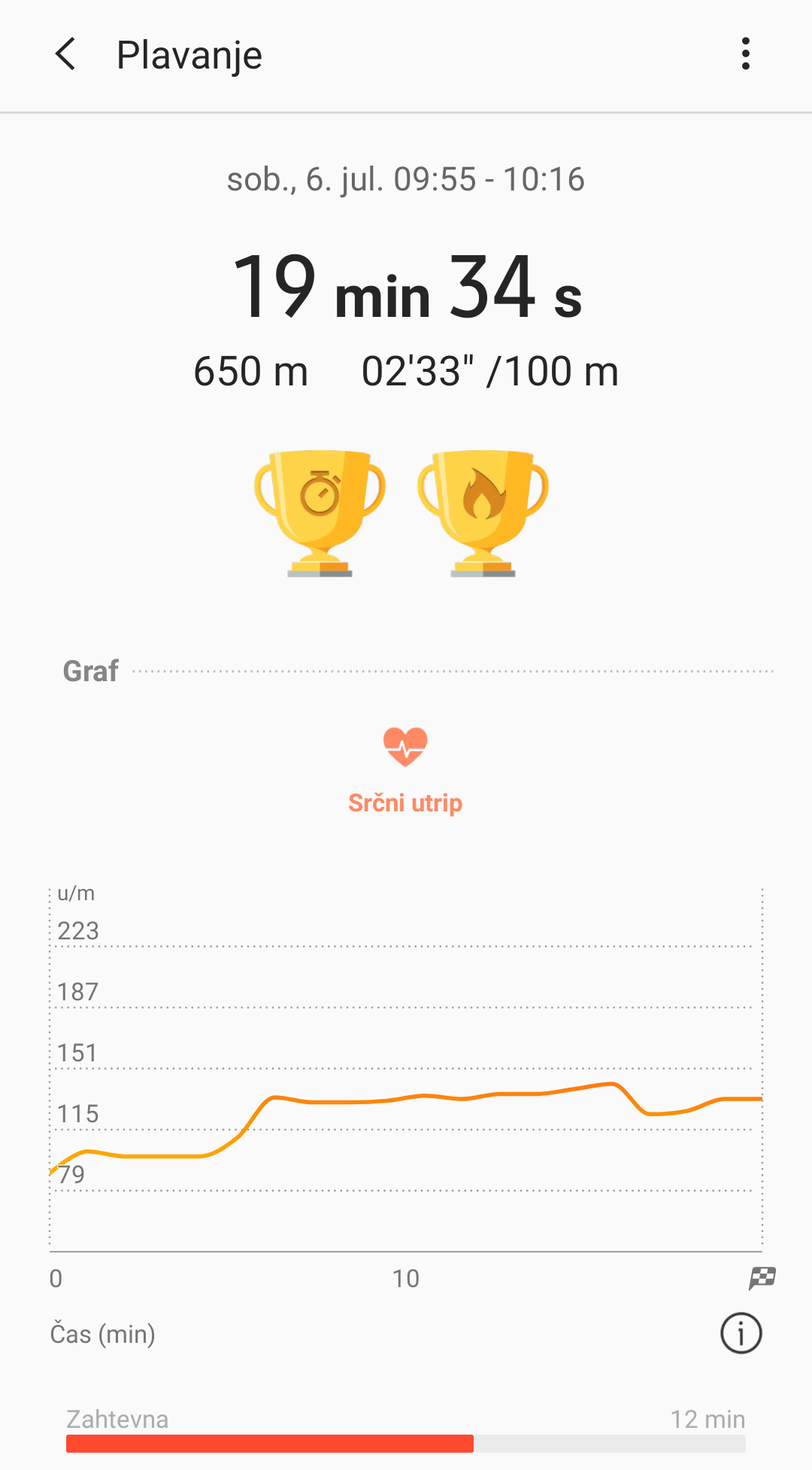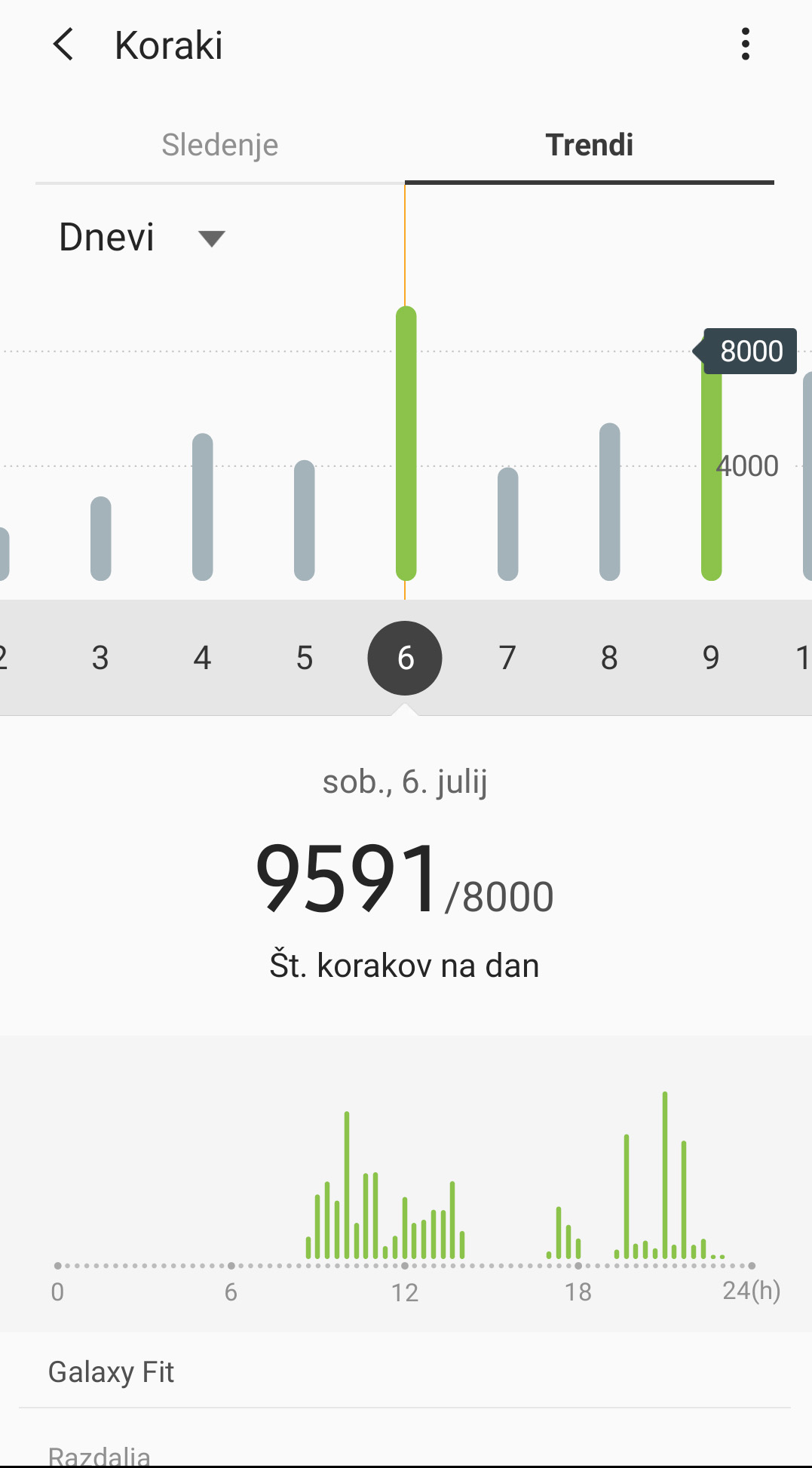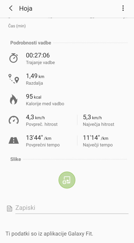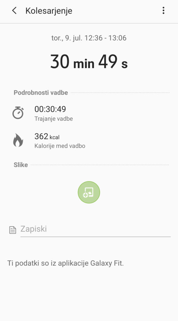 V Samsungu zelo poudarjajo »zdravstveno« in rekreacijsko plat, a tu zapestnica ne blesti tako zelo. Kadar je uporabnik aktiven, sama zazna »vadbo« in deset minut po njenem začetku vklopi vadbeni način, kar poznamo že iz prejšnjih Samsungovih ur. Seveda pa lahko spremljanje vadbe sprožiš sam(a) in pri tem izbereš dejavnost. Vendar si naprava na žalost ne more pomagati s satelitskimi podatki. Vgrajenega sprejemnika za GPS in ostale tovrstne sisteme nima, pa tudi telefonovega ne izkorišča, četudi je v bližini. Natančnosti nisem primerjal s kakšno drugo podobno napravo, po občutku pa bi rekel, da je bil Galaxy Fit nekoliko preoptimističen glede tega, koliko sem prehodil ali pretekel, tudi srčni utrip imam običajno nižji. Zagotovo to ni pripomoček za resno merjenje rekreacije, zadošča pa za občutek, kaj je uporabnik počel. Poskusil sem tudi plavanje v morju in zapestnica je zdržala dva krajša izleta v ne pregloboko modrino, ne vem pa, ali jo je pametno stalno izpostavljati slani vodi, četudi jo potem opereš s sladko. Vsekakor pa vodotesnost je ena od oglaševanih lastnosti. V vsakem primeru za moj okus najboljša rekreativna zapestnica (z GPS-om) ostaja Garminova Vivosport.
