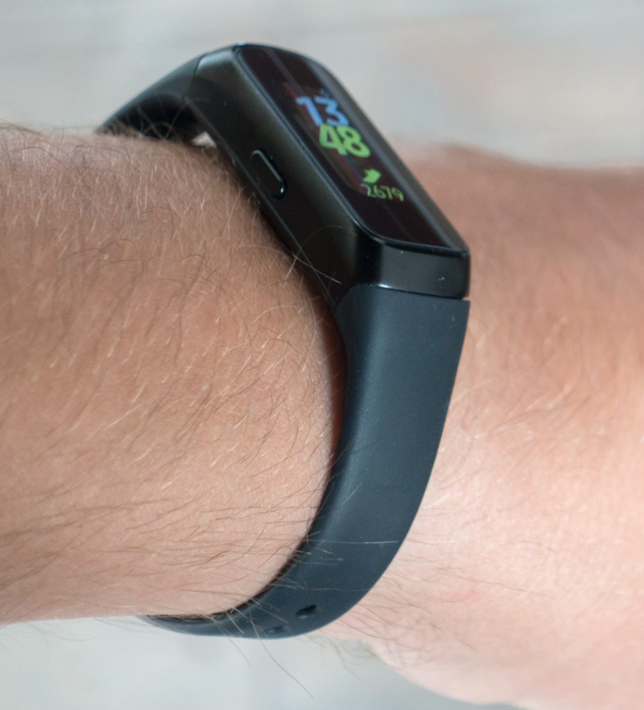 Samsung je v preteklosti poskušal z ukrivljenimi zaslončki izdelati zapestnice, ki bi se lepo prilegale zapestju. Prva generacija teh naprav (Gear Fit) mi je bila všeč, a se mi je s približno dvestoevrsko postavko zdela predraga, potem pa so v korejskem podjetju nekoliko izgubili štreno in cenovno še bolj pretiravali. Zato je lepo videti, da so naredili korak nazaj, tokrat ubrali bolj klasičen pristop in (več kot) prepolovili ceno, ki bo verjetno kmalu v trgovinah še nižja, to se običajno dogaja s tovrstnimi napravami tega proizvajalca. Galaxy Fit je zapestnica z ravno zgornjo površino (kjer je zaslonček), precej ožja od prejšnjih Fitov in zato še lažja in skoraj neobčutna na roki. Upravlja pa se jo s kombinacijo dotikanja zaslona in tipke ob strani.