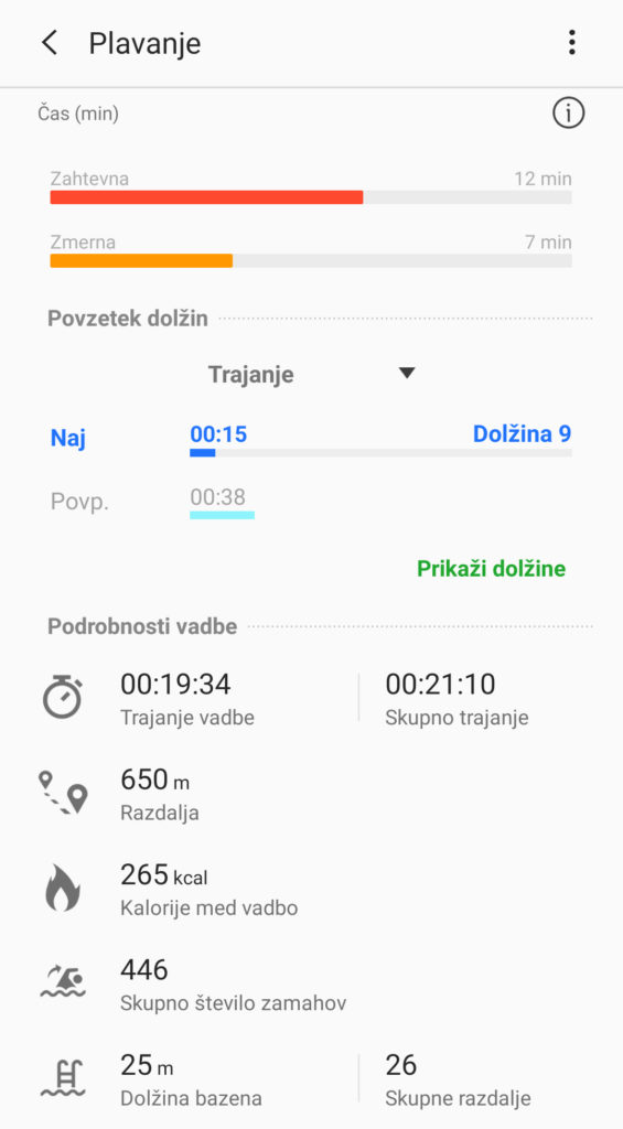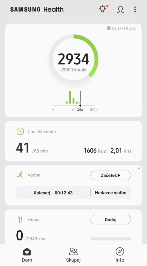 Na telefonu je treba imeti nameščeni dve aplikaciji. Galaxy Wearable služi nastavljanju uporabniškega računa in same zapestnice, vključno s prikazom glavne številčnice. V Samsung Health pa se stekajo podatki, ki jih naprava zabeleži, in tam je potem to mogoče pregledati, interpretirati, preveriti povzetke. Nisem pa dobival kakšnih predlogov, kaj naj počnem (drugače), a morda česa nisem obkljukal oz. dovolil. Zapestnica sicer poleg štetja korakov ter preračunavanja prehojenih stopnic in porabljenih kalorij še meri srčni utrip, ugotavlja raven stresa in spremlja spanje, ročno pa lahko uporabnik vnaša podatke o tem, koliko vode in kave je spil. S telefona dobiva in prikazuje še vremensko napoved (in trenutne podatke) in obvestila. Pri tem je lahko telefon tiho in opozarjanje uporabnika v celoti prevzame reč na roki. Da se tudi odgovarjati na sporočila z vnaprej pripravljenimi povedmi, ki jih tudi spišeš v aplikaciji. Ne da pa se pogovarjati, za to je še vedno treba poseči po telefonu. Toda vsa sporočila in prikazi klicajočih so bila brezhibna, ne glede na to, da nisem uporabljal Samsungovega telefona, za Huaweijevo uro Watch GT tega denimo ne morem trditi.