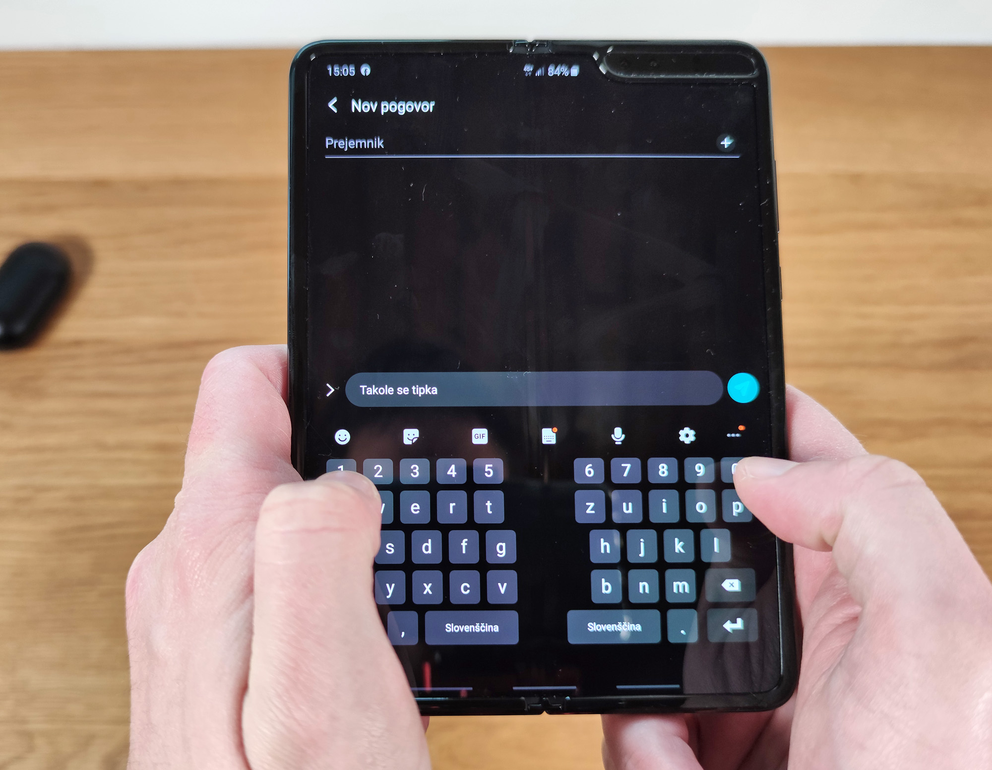Prvi telefon s prepogljivim zaslonom, ki je v prodaji v Sloveniji in ki smo ga dobili na test (poigrati smo se uspeli še z enim), sva si oba z Marjanom podrobno ogledala. Zato sva se odločila za malce drugačen pristop k temu opisu. Marjan je vtise zbral v nekaj odstavkov besedila, sam pa sem večino svojih povedal v videu.