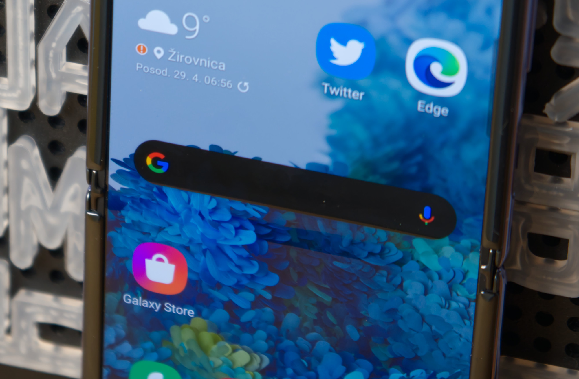 V vsakem primeru pa sem pri njem videl doslej najbolj izpopolnjen sistem prepogibanja. Nobenih sumljivih zvokov, celoten postopek teče enako gladko, zaslon nikjer ne visi v zraku, kot pri omenjeni Motoroli, zadeva deluje trpežno in sploh ni videti, da bi ji pogosto odpiranje in zapiranje kakor koli škodilo. Malo bi me seveda skrbelo, kako dolgo bo delovalo tako lepo, vendar manj kot pri vseh drugih, tudi Foldu. Lepo je opazovati napredek te tehnologije in veselim se Folda 2, še toliko bolj, če bodo po vzoru Flipa še bolje prilagodili aplikacije in zmanjšali zarezo za fotoaparat ali jo sploh povsem umaknili. Pri Flipu se vsebina (fotografija) zna samodejno pomakniti na zgornjo polovico zaslona ali se delno umakniti na spodnjo polovico (pri Youtubu, denimo), kadar je telefon v omenjenem sedečem položaju. Seveda pa je takrat tisto, kar je na zaslonu, dokaj majhno.