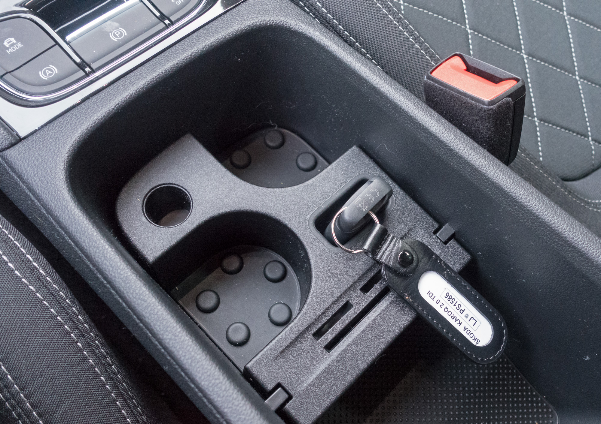 Rahlo presenečenje je pripravil aktivni tempomat, ki je držal krajše razdalje od večine tovrstnih pomočnikov. Običajno moram nastaviti na najmanjšo, tokrat pa sem imel nekje na srednji stopnji. Sicer nič narobe, ker tako za seboj nisem imel nestrpnih voznikov, pa tudi nasploh je radarski sistem vozil lepo, edino kakšen tovornjak skozi ovinek ga utegne zmesti. Ko bi se le Škoda odpovedala podvolanski ročici zanj in hkrati omogočila premikanje hitrosti z manjšimi intervali, ne samo po deset km/h. Drugod pa se prav pri tej znamki domislijo česa zvitega. Četudi je upravljanje »brez ključa«, ta še vedno ostaja, zanj pa so pripravili luknjico poleg sredinskih držal za pijačo. Odklepanje in zaklepanje brez ključa deluje nekoliko nezanesljivo, včasih brez težav, drugič po nekaj poskusih, tretjič pa se je vseeno treba začeti h ključu, pravila ni. Svetloba iz sprednjih »ledic« je dobra, sem pa že videl boljšo, tudi osvetlitev v ovinek je povprečna, samodejnost pa žarometom povsem manjka.