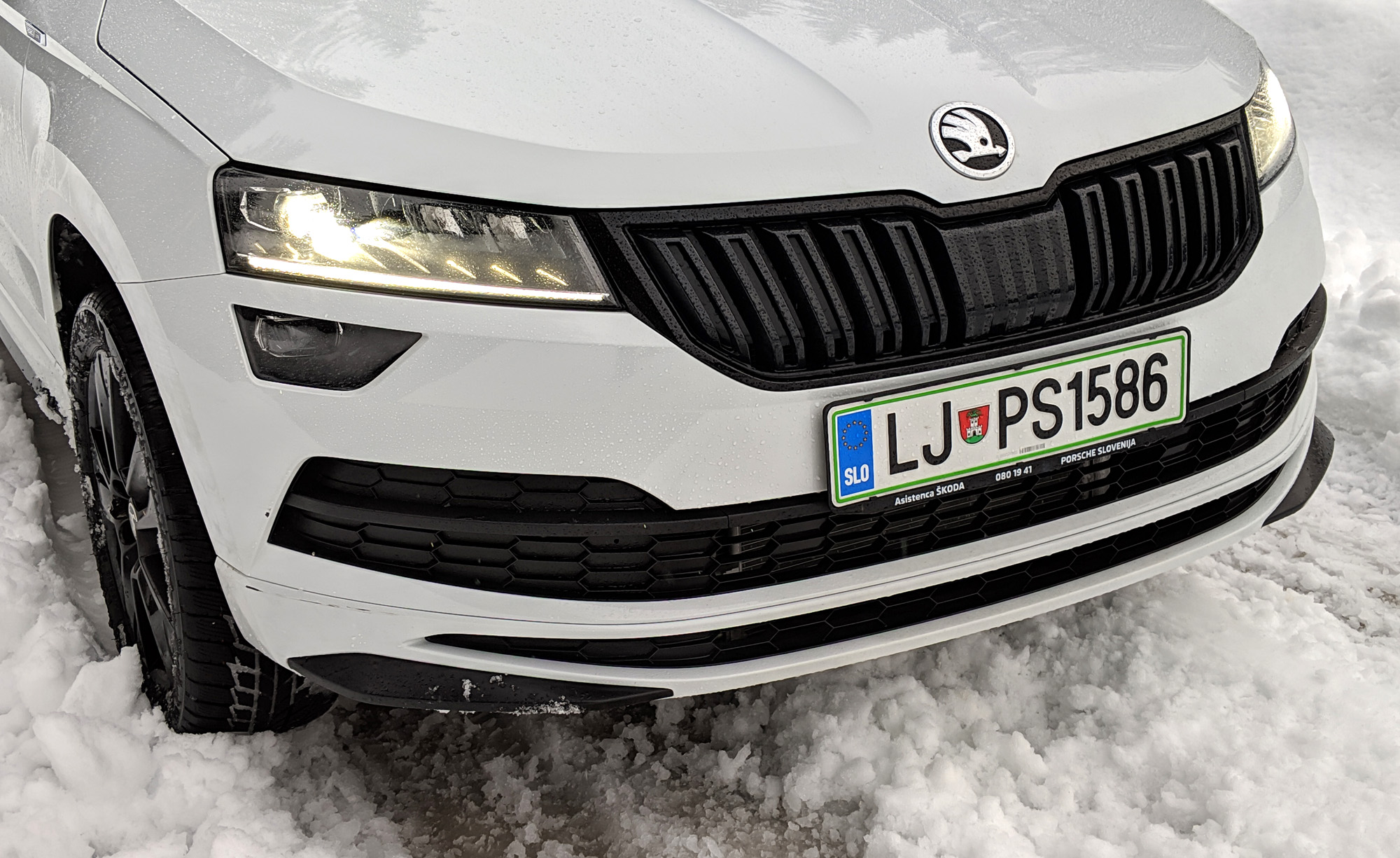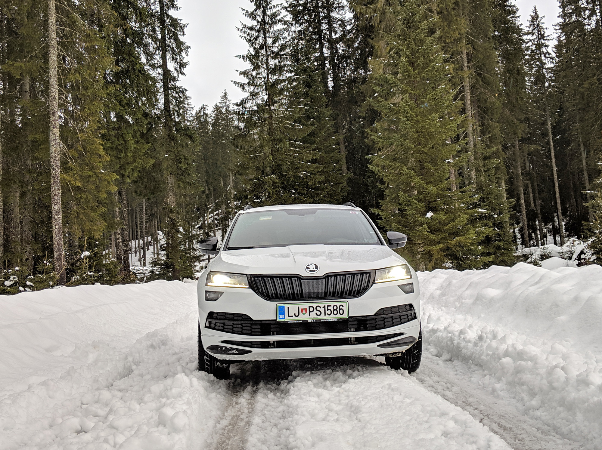 Odločanje med 4×4 in sprednjim pogonom je ena ključnih izbir pri vsakem tovrstnem avtu, če to možnost seveda daje. Karoq je že sam po sebi dovolj uporaben in vsestranski, da je vsekakor zanimiv tudi brez štirikolesnega pogona. Ja pa tudi ravno toliko drag, da doplačilo za 4×4 končne slike ne spremeniti bistveno. V zimskih razmerah je tak pogon vsekakor prišel prav, če bi avto preizkušal zdaj, pa bi se najbrž že spraševal, kdaj bi to sploh rabil. Škodin sistem je tudi tak, da gre privzeto pogon na sprednji kolesi, k zadnjim ga avto samodejno dodaja po potrebi. Zadeva nedvomno deluje in po snegu bi se dalo priti marsikam. Toda po drugi strani ni opcije, da 4×4 ostane ves čas vklopljen, pri opremi Sportline pa tudi ni tipke Off Road, ki jo premore denimo Scout, da avto še malo bolj pomaga s svojimi elektronskimi sistemi pri vzponih in spustih ter na zaslonu prikazuje podatke o naklonih in podobnem.