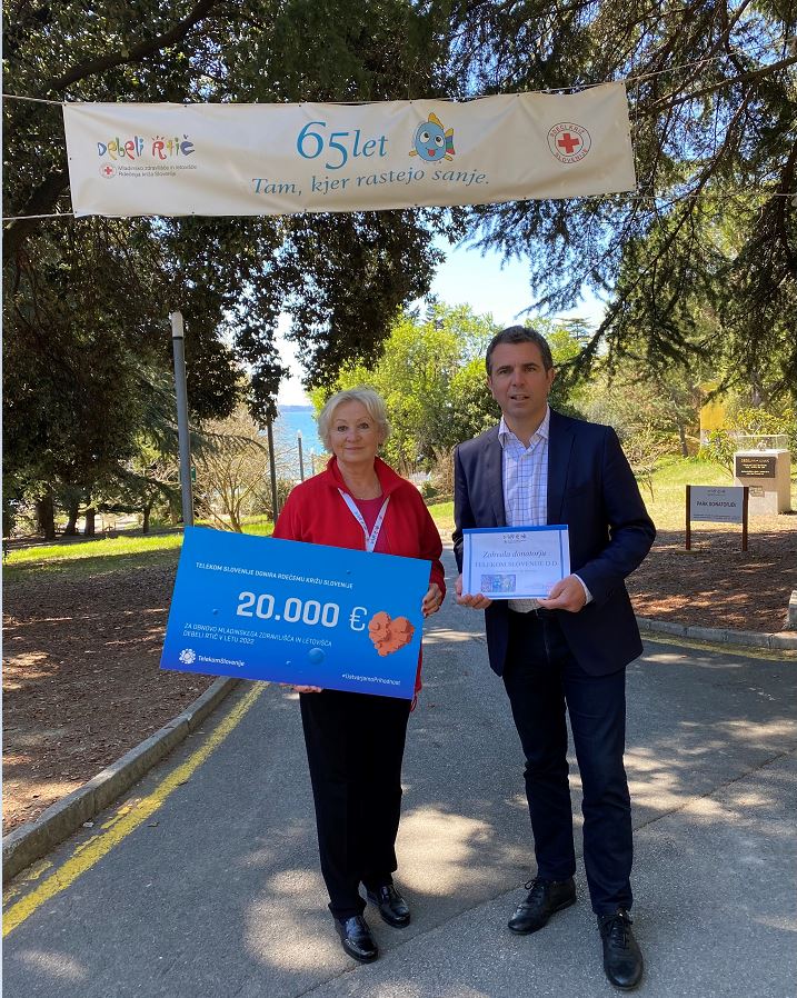 Telekom Slovenije je Rdečemu križu Slovenije za nadaljnjo prenovo in ureditev bivalnih objektov ter okolice v Mladinskem zdravilišču in letovišču Debeli rtič predal donacijo v višini 20.000 evrov. Zdravstvena letovanja in rehabilitacije otrok potekajo že 66 let, v tem času pa je na Debelem rtiču bivalo že okoli 650.000 otrok iz vse Slovenije. Donacijo je mag. Ani Žerjal, vodji Mladinskega zdravilišča in letovišča Debeli rtič, predal Tomaž Jontes, podpredsednik uprave Telekoma Slovenije.