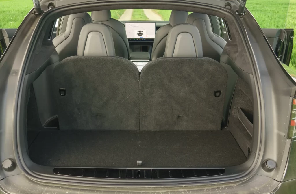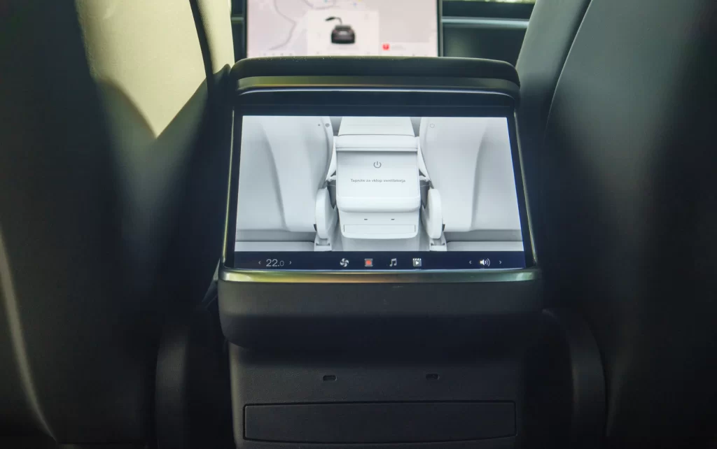 Vse tri različice imajo v drugi vrsti še dodaten 8-palčni zaslon, namenjen upravljanju klimatske naprave v zadnjem delu ter gledanju večpredstavnostnih vsebin med vožnjo. Celoten paket, vključno z dokaj standardno armaturno ploščo, ki je spodobno narejena, daje dober občutek, ki ga pri dobrih 140 tisočakov vrednemu avtu morate dobiti. Vseeno se najde kakšna malenkost, ki je vidna na drugi pogled, denimo srebrni vijaki na črni podlagi, in morda bi se spodobilo še malo več udobja, ki smo videli v Mercedesu EQS SUV, a slednji je še nekoliko dražji. K temu dodajmo ogromno prednje steklo, ki sega nad glave voznika in sovoznika, dodatna strešna okna v zadnjih vratih in že omenjeno električno udobje, ki naredi avto res posebnega in drugačnega.