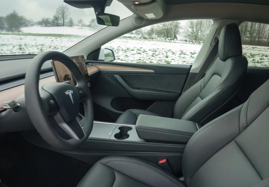 Voznikov delovni prostor pravzaprav že zelo dobro poznamo, kajti razlike v primerjavi s trojko praktično ni. Volan z dvema vrtečima gumboma, obvolanska ročica na vsaki strani in dva pedala, za »plin« in zavore. Za vse ostalo je avtomatika, ki deluje presenetljivo dobro. Priznamo, še vedno bi si želeli zaslon pred voznikom, vsaj z osnovno informacijo o hitrosti, ali pa prosojnega s prikazom na asfaltu, a če se prepustimo samodejnemu uravnavanju hitrosti bomo vedno peljali po pravilih, morda največ 5 km/h nad omejitvijo. Sicer pa osrednji zaslon, res gromozanski, vsaj s kotičkom očesa praktično vedno v vidnem polju, a vseeno bi radi malo več udobja. Voznikov sedež je izvrsten, električno nastavljiv, vključno z ledvenim delom, z ravno pravšnjimi bočnimi oprijemi, ki omogočajo malo bolj športno vožnjo. Vsi sedeži so ogrevani, tako sprednji kot zadnji, prav tako volan. Gretja ni potrebno vsakič vklapljati, ampak smo zopet pri avtomatiki, ki to opravi namesto nas. Ob skrajno špartanskem voznikovemu in sovoznikovemu delu so snovalci mislili ne le en, ampak dva koraka naprej. Sredinski del med sedežema ima na začetku dva brezžična polnilnika za telefone, medtem ko ostali proizvajalci milostno privoščijo kvečjemu enega. Poleg tega se v predalu med sedežema skrivata še dva klasična USB-vtiča, prav tako sta še dva dostopna potnikom zadaj. V osrednjem delu sta tudi dva predala, poleg tega ima sovoznik še vedno svoj predal, ki pa ga odpremo preko zaslona. Slednji lahko deluje kot sef, saj mu lahko določimo kodo pin za odpiranje, čeprav dvomimo, da je tako dobro zaščiten, da ga ne bi mogli odpreti z izvijačem. Obe senčili imata osvetljeno ogledalo, za nameček pa so še držala za pijačo, tako v vratih kot na sredini.