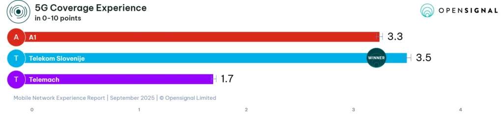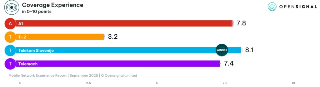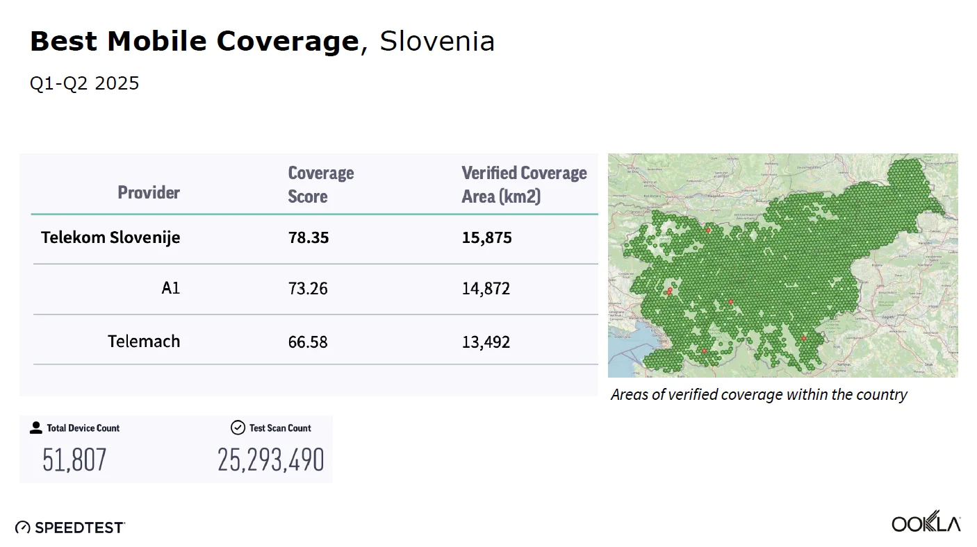 V pokritosti je pri Ookli Telekom Slovenije nesporni zmagovalec, dobil je najvišji rezultat in tudi za tisoč km2 večje ocenjeno območje pokrivanja od A1 na drugem mestu. Ta pa ima še približno tako prednost pred Telemachom. Glede na podatke Opensignal so razlike precej manjše, tudi pri 5G sta Telekom in A1 precej skupaj, tretji pa zaostaja.