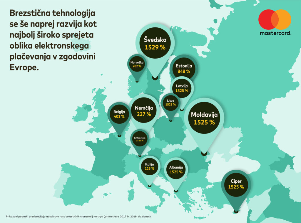 Brezstično plačevanje v Evropi postaja prevladujoče, trdijo v podjetju Mastercard. Po njihovih podatkih je že skoraj vsaka druga kartična transakcija izvedena brezstično, ta tehnologija pa je v porastu in bo kmalu bolj priljubljena od klasičnega vtikanja kartic v terminale POS. Saj tudi ni razloga, da bi bilo drugače.