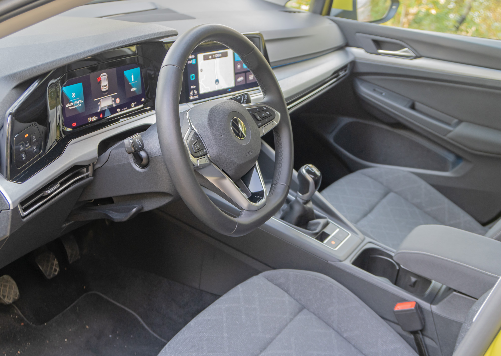 Digitalno voznikovo okolje seveda pozdravljam, ker definitivno deluje sodobno in tudi ponuja večjo prilagodljivost, saj si je prikaz mogoče v veliki meri ukrojiti po svojih željah. Sredinski zaslon z novim infozabavnim sistemom pri opremah Golf in Life meri dobrih osem palcev v diagonalo in to je dovolj, od opreme Style navzgor pa deset palcev, kar se sliši zelo fino, nisem pa prepričan, da večja površina kaj dosti doprinese, razen denimo večjega zemljevida med navigiranjem. Tudi uporabniški vmesnik poskuša malo spominjati na telefonske, s tipko »domov« oz. »ven« ter nekaterimi osnovnimi informacijami (ura, nastavitev temperature, obvestila, …) na levi strani. Naenkrat je lahko prikazana ena »aplikacija« ali pa dve, ena v večjem in druga v manjšem oknu, s še dvema bližnjicama za različne nastavitve zraven. In takih zaslonov, med katerimi se uporabnik pomika s potegom prsta v levo ali desno, je več. Princip je drugačen kot pri prejšnjih sistemih tega proizvajalca, razlikuje se tudi od tistih, ki jih uporabljajo novi modeli sestrskih znamk. Za moj okus je bolj logičen in pregleden, tudi grafično kar lep, čeravno ne najbolj inovativen. Voznikov zaslon se še bolj razlikuje od onih v A3, Leonu ali Octaviji. Vsaj po grafiki in obliki, ki je res nenavadna. Prikaz informacij je sicer podoben, kar pomeni, da niti tu ni idealen. Nekatere so na zaslonu ves čas, v spodnji vrstici, ne glede na izbrani izgled »merilnikov«, prav tako sta vedno prisotna kroga ali kvadrata z izbranima tematikama (navigacija, predvajalnik, …). Prijetno in moderno, kot pri večini pa bi se dalo zadevo povzdigniti še na višji nivo z nekaj več možnostmi prilagajanja in dodatnimi informacijami.