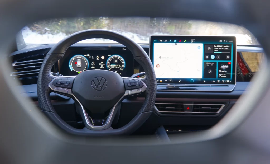 Volkswagnova infozabava je bila v zadnjih letih pogosto tarča kritik, a so jo bistveno dodelali. Postala je bolj odzivna, vmesnik je prijaznejši, četudi še vedno deloma ne povsem razumljiv, navigacija je odlična in tudi ostale »nujne« funkcionalnosti deluje dobro. Ni pa kaj veliko dodatnega v smislu aplikacij, iger ali še česa. Rad bi tudi večjo prilagodljivost »domačega zaslona« in da se ne bi po pritisku tipke »domov« ter ob zagonu avtomobila zadeva vedno postavila na tretjo stran, temveč na prvo (že omenjeno domačo).