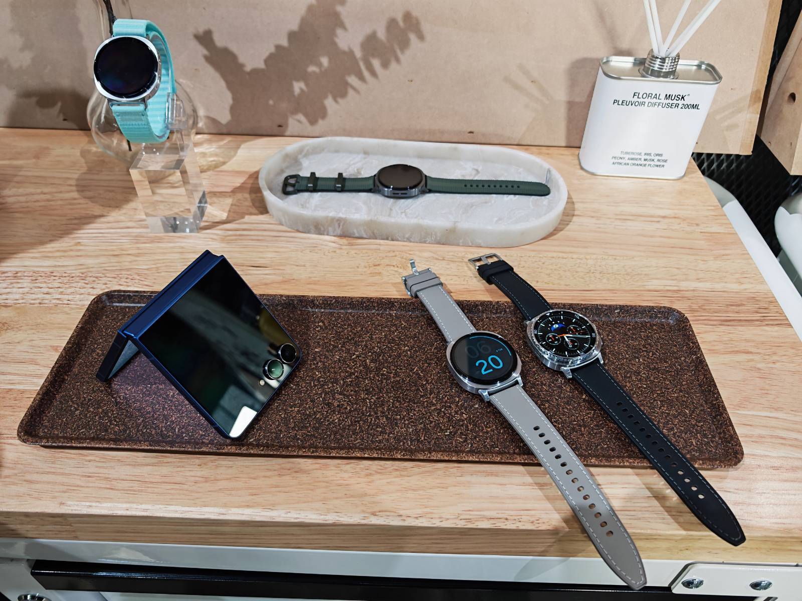 Poleg prepogljivih telefonov so v Brooklynu predstavili še pametne ure Samsung Galaxy Watch8. Poudarek je na pomoči, ki jo ura nudi. Dober primer sta vodnik za spanje in trener za tek. Poudarili so še posredno merjenje žilne obremenitve med spanjem in indeksa antioksidantov.