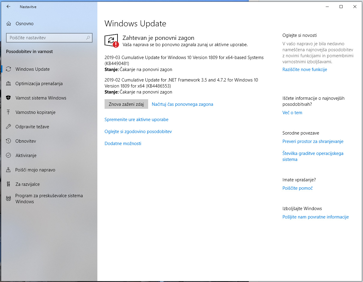 Skupaj z naslednjo večjo različico, ki bo nosila oznako 1903 in bo na voljo od maja naprej (a ne za vse), bo vendarle konec takojšnjega samodejnega prenašanja in nameščanja posodobitev, ko bo uporabnik v razdelku Windows Update kliknil za preverjanje, če je kaj novega. Zgolj prikazale se bodo morebitne novosti in pod njimi bo možnost, da jih namestiš. Ne bo to več šlo brez vprašanja. Prav tako bo uporabnik imel možnost preložitve tudi takrat, ko ga bo sistem sam obvestil, da je na voljo nova različica. Njeno namestitev bo lahko prestavil za največ 35 dni (petkrat bo lahko zamaknil za sedem dni).