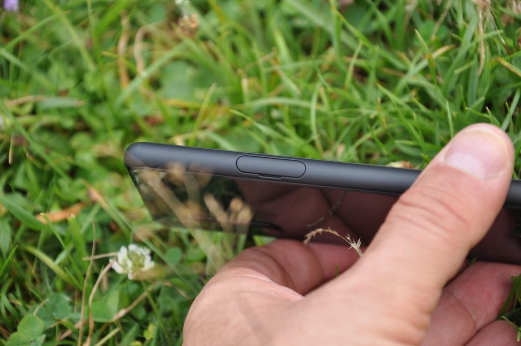 Podolgovato telo blagodejno vpliva tudi na ergonomijo enoročne rabe. Telefon ne drsti iz rok, na steklenem hrbtišču se prstni odtisi radi prijemljejo, a tega se ne moremo znebiti, dobro pa se v praksi izkaže tudi odločitev za vgradnjo tipala prstnega odtisa v tipko za vklop. Ni samo hitro in natančno, je tudi ves čas vključeno, zato tipke ni treba pritisniti za odklepanje telefona, če tega ne želite. Nad njo je za današnje razmere velika in široka kombinirana tipka za jakost zvoka, končno se je nekdo upal vgraditi večjo in debelejšo od povprečja, prijetna za rabo pa je tudi njena odzivnost. Čeprav se bo nekaterim zdela kar malce preveč »mehka«. Neobičajen je tudi z gumijastim pokrovom zaščiteno kombinirano ležišče za kartici SIM in pomnilniško kartico, saj za odpiranje ni potrebno dolga ostra in toga »igla«, pač le malce daljši noht!